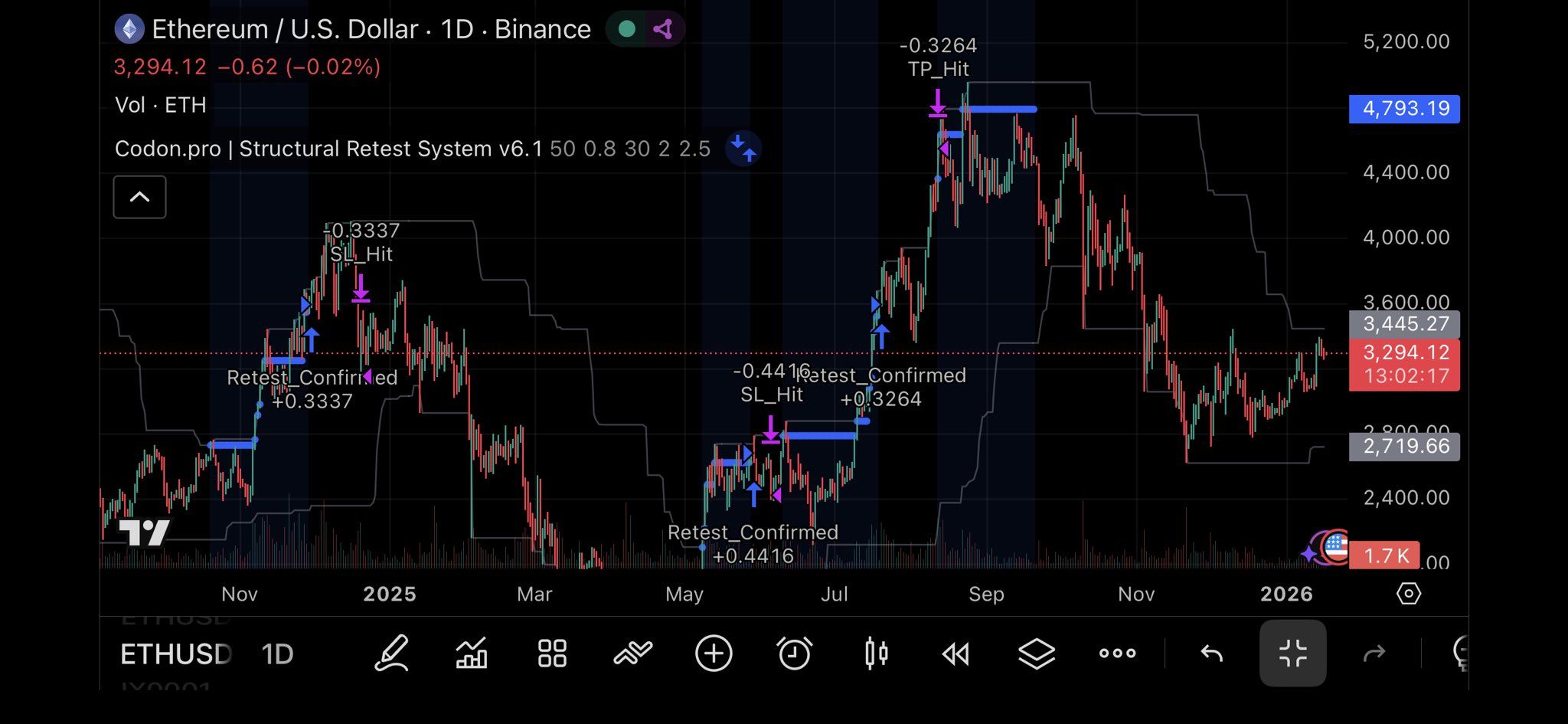 strategy("http://codon.pro | Structural Retest System", overlay=true, initial_capital=10000, default_qty_type=strategy.percent_of_equity, default_qty_value=10)